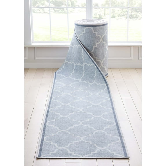 Hero image 0 of Custom Size 22" Wide Runner Cotton Backing Machine Washable Hall Rug 22 Inches Wide x 80 Feet Long Runner (22" x 80' Runner) Brooklyn Trellis Grey Geometric Indoor Outdoor Low Pile, 0 of 5