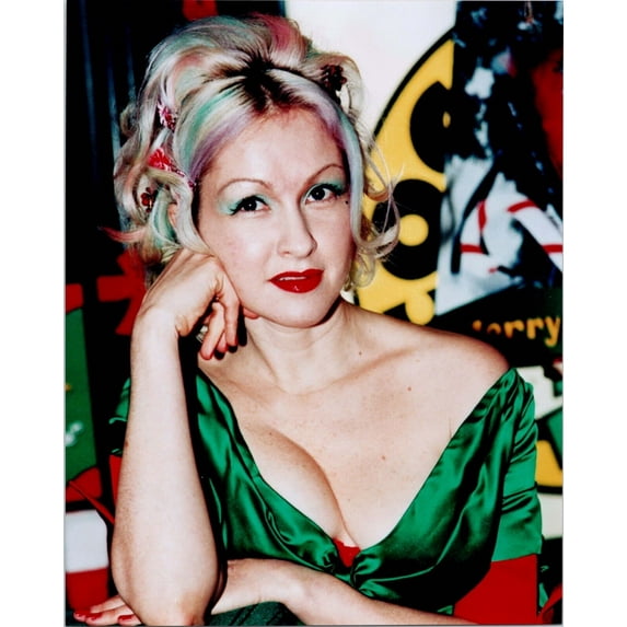 Hero image 0 of Cyndi Lauper with huge cleavage candid pose in green dress 5x7 inch photo, 0 of 1