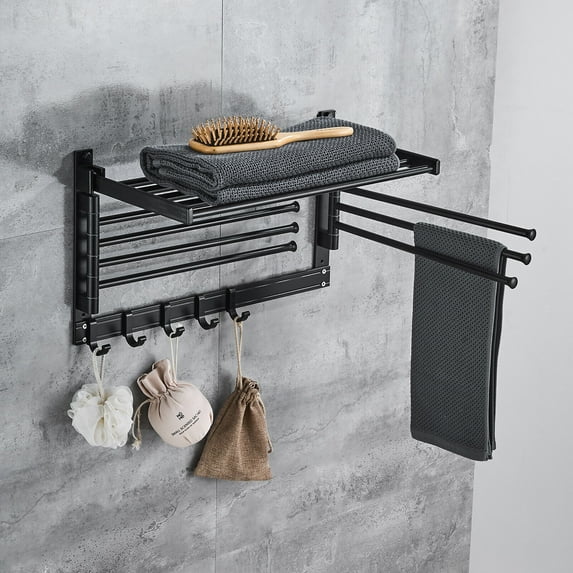 Wall Mounted Towel Rack Laundry Room Bathroom Cloth Towel Shelf with Hooks 20kg