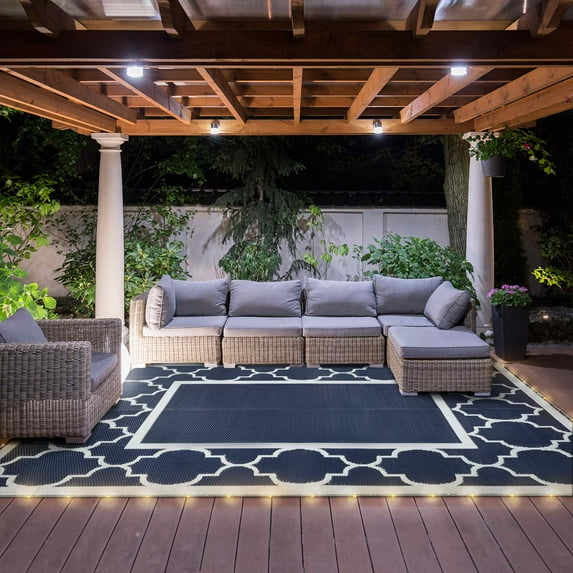 Hero image 0 of DEORAB 6'X9' Led Outdoor Rug In Night Reversible Plastic Waterproof Outside Rugs,Blue & White, 0 of 5