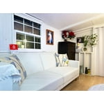 - Modern Aesthetic: Merging past, present, and future design trends, this futon integrates bold shapes and warm patterns to bring a splash of modern and mid-century retro ambiance to your living room.