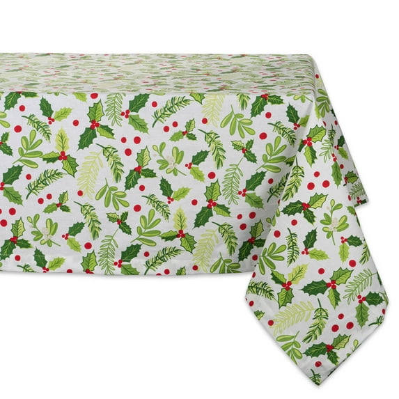 - DII 60x84" Rectangular Cotton Tablecloth, Boughs of Holly - Perfect for Dinner Parties, Christmas, Holidays, or Everyday use