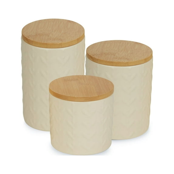 Hero image 0 of DII Kitchen Accessories Textured Matte Ceramic Canister Set, Antique White, Vine, 3 Piece, 0 of 3