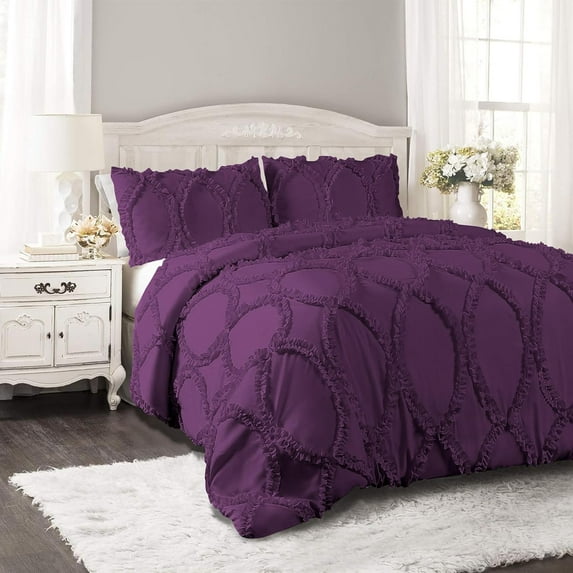 Hero image 0 of DNG Creations 5 Piece Ruffle Ribbon Design Comforter ( Oversized Super King Size ) Ultra Soft All-Season 550 GSM 800 Threads Count,100% Egyptian Cotton - Solid Plum Colour, 0 of 5