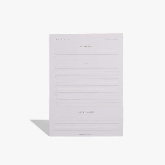 The Daily Focus Notepad is designed to get your mental to-do list out of your head and onto paper.