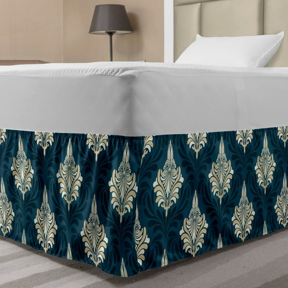 Damask Bed Skirt, Classic Victorian Floral Motif Vintage Repetition, Elastic Bedskirt Dust Ruffle Wrap Around for Bedding Decor, 4 Sizes, Petrol Blue Ivory, by AmbesonneDamask Bed Skirt Classic Victorian Floral Motif Vintage Repetition Elastic Bedskirt Dust Ruffle Wrap Around Bedding Decor 4 Sizes Petrol Blue Ivory ADamask Bed Skirt Classic Victorian Floral Motif Vintage Repetition Elastic Bedskirt Dust Ruffle Wrap Around Bedding Decor 4 Sizes Petrol Blue Ivory A