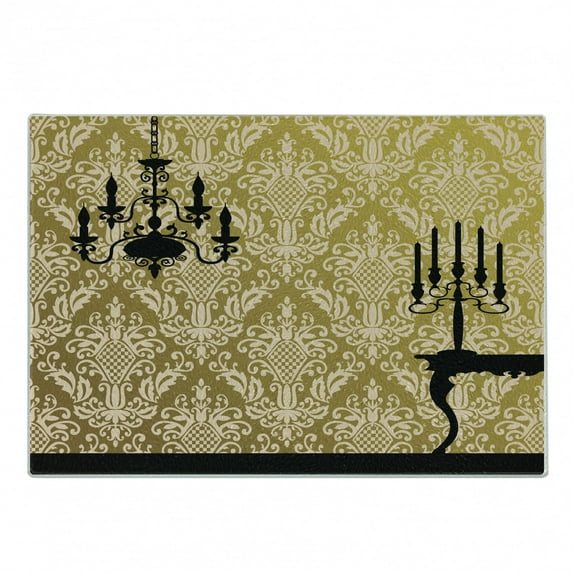 Hero image 0 of Damask Cutting Board, English Country House Damask Motif on Wall and Chandelier Silhouettes Renaissance, Decorative Tempered Glass Cutting and Serving Board, Small Size, Yellow Black, by Ambesonne, 0 of 1