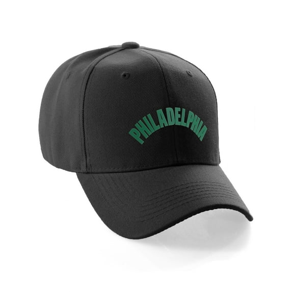 Daxton USA Cities States Baseball Hat Cap Arch Letters, Philadelphia Black Green