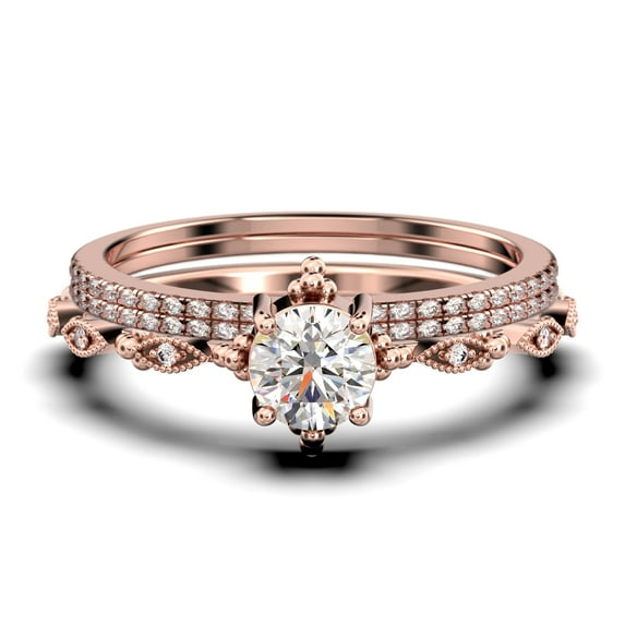 Hero image 0 of Dazzling Boho & hippie 2.25 Carat Round Diamond Moissanite Engagement Ring, Wedding Ring in 925 Sterling Silver With 18k Rose Gold Plating, Affordable Gift, Trio Set, Matching Band, 0 of 4