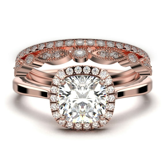 Hero image 0 of Dazzling Halo 2.55 Carat Cushion Cut Diamond Moissanite Engagement Ring, Wedding Ring, Two Matching Band in 10k Solid Rose Gold Shank, Gift For Her, Promise Ring, Anniversary Ring, 0 of 4