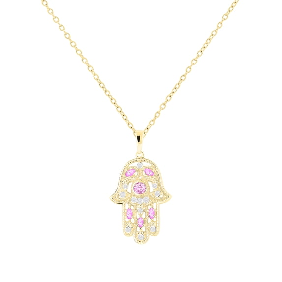Hero image 0 of Dazzlingrock Collection Round & Marquise Pink Sapphire & Round White Diamond Hamsa Hand of Fatima Pendant for Women with Gold Chain (0.09 ctw, Color I-J, Clarity I2-I3) in 10K Yellow Gold, 0 of 1
