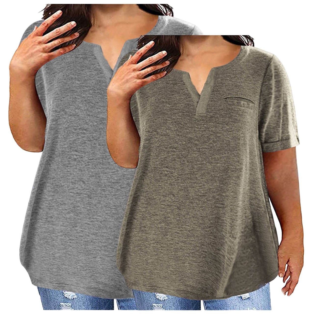 Stylish Olyvenn 2 Pack Plus Size Tops for Women V-Neck Casual Loose Summer Short Sleeve Shirts Solid Blouse Hide Belly Tunics Gray XXXXXL