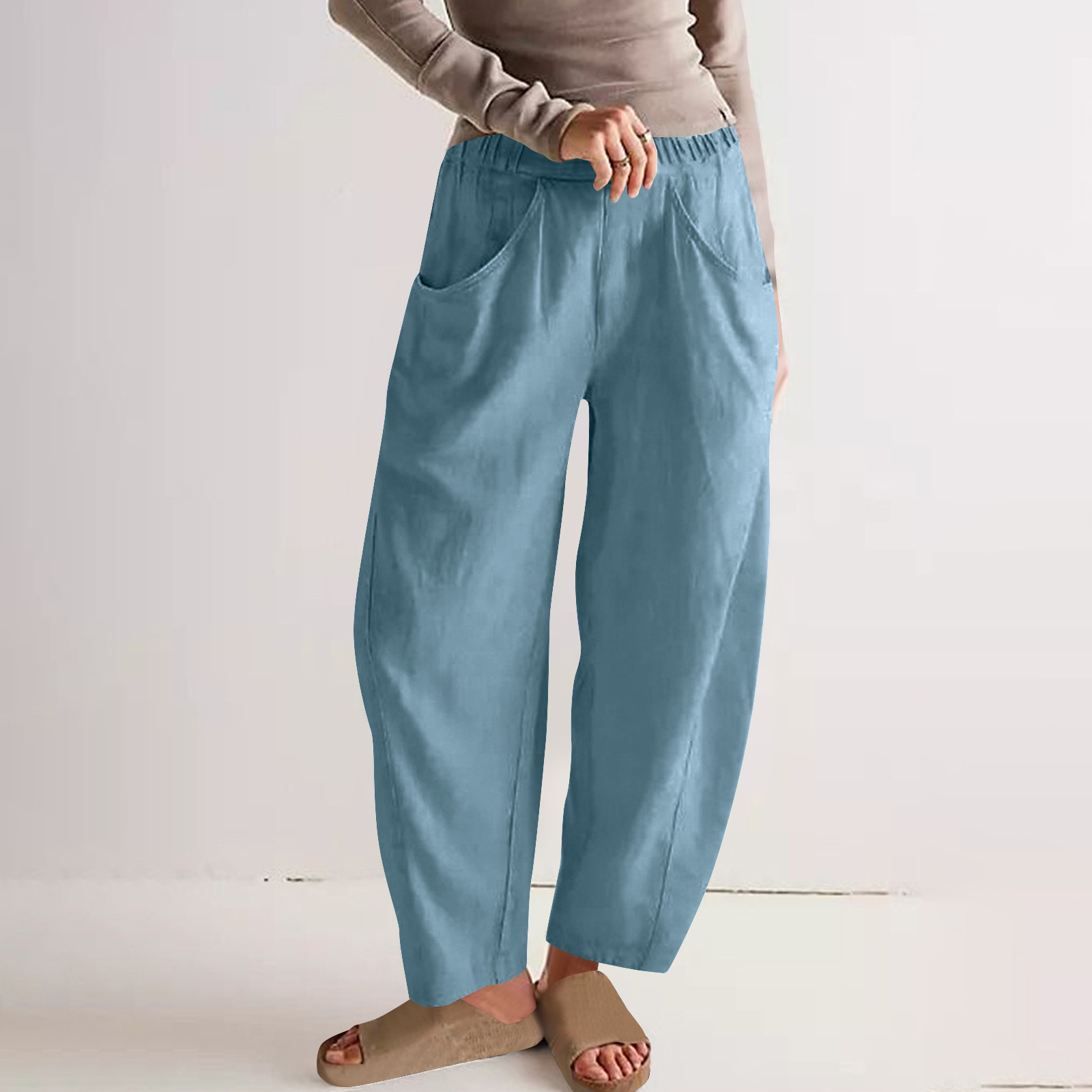 Hero image 0 of Stylish Olyvenn Women's Cotton Linen Harem Pants Work Casual Elastic Waist Pants with Pockets Lightweight Summer Beach Palazzo Sky Blue XL, 0 of 6
