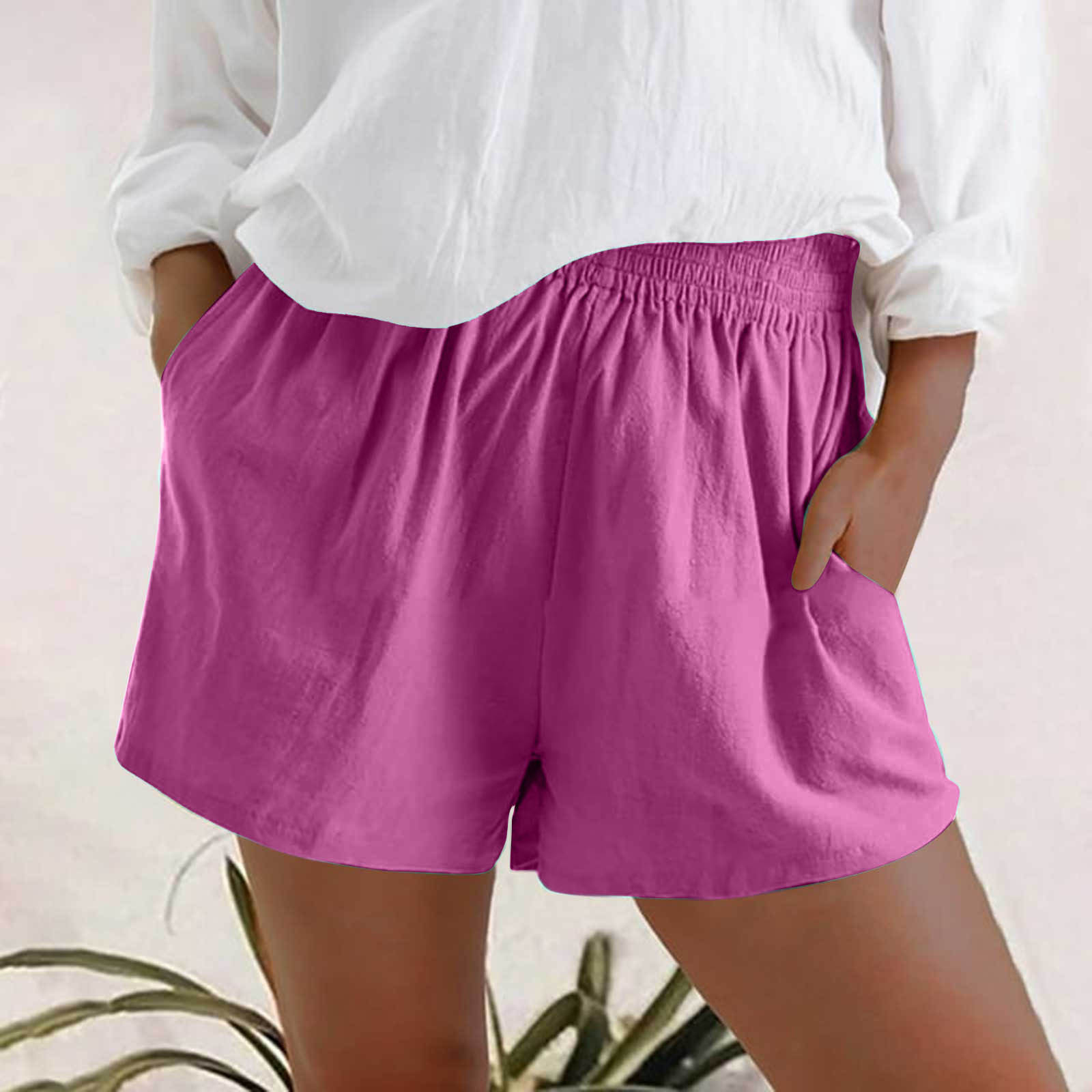 Stylish Olyvenn Women's Linen Shorts Elastic Waist Pants for Women Ladies Shorts with Pockets Womens Summer Pants Solid Shorts Hot Pink XXXL