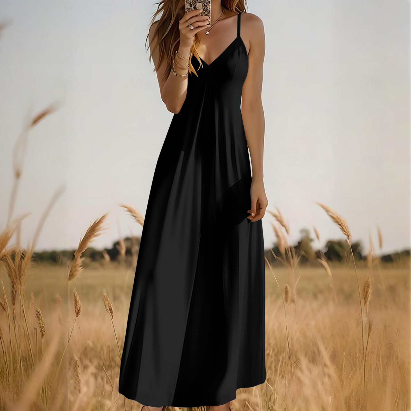 Hero image 0 of Fashion SMihono Summer Dresses for Women 2025 Vacation Casual Plus Size Maxi Beach Sun Dress Boho Flowy Long Suspender Sundress Black XL, 0 of 7