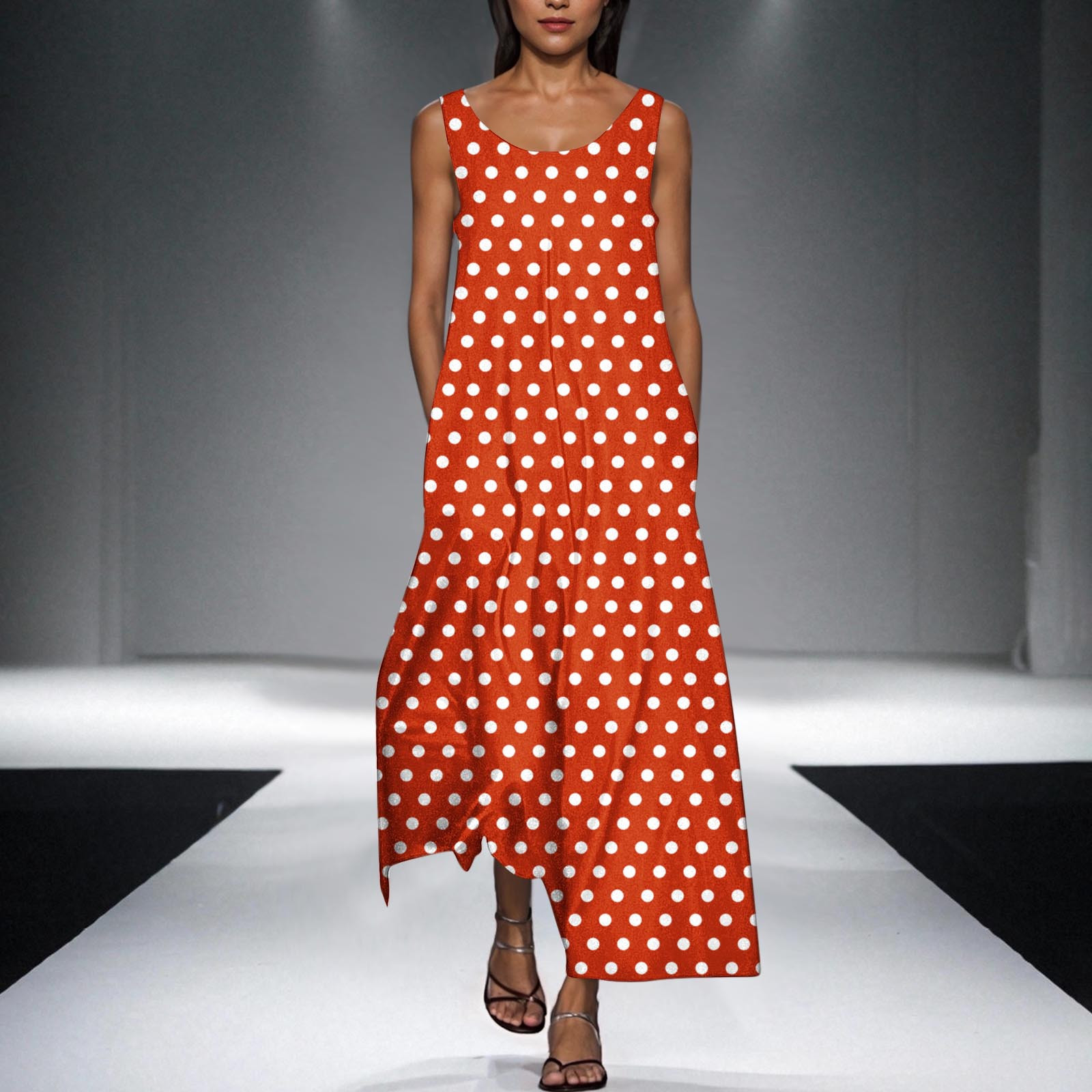 Fashion SMihono Womens Summer Maxi Dresses 2025 Flowy V Neck Sleeveless Swing Casual Tiered Beach Sundress with Pockets Orange XXL
