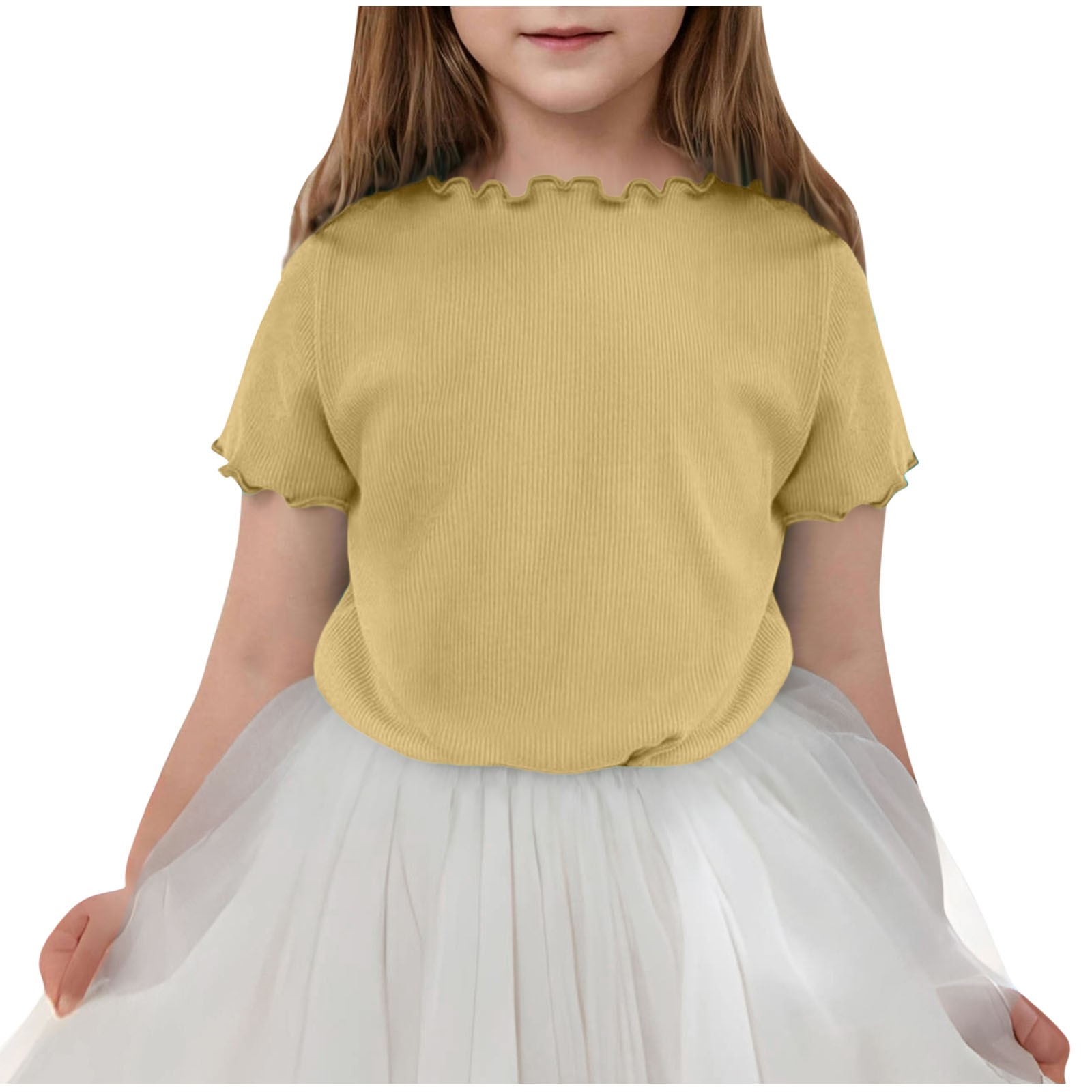 Hero image 0 of Fashion YLSDY Kids Toddler Girls Short Sleeve Ruffle Tshirt, Blank Girls Ruffle Top, Solid Ruffle Shirts Summer Tunic Tee Shirts Yellow 140, 0 of 5