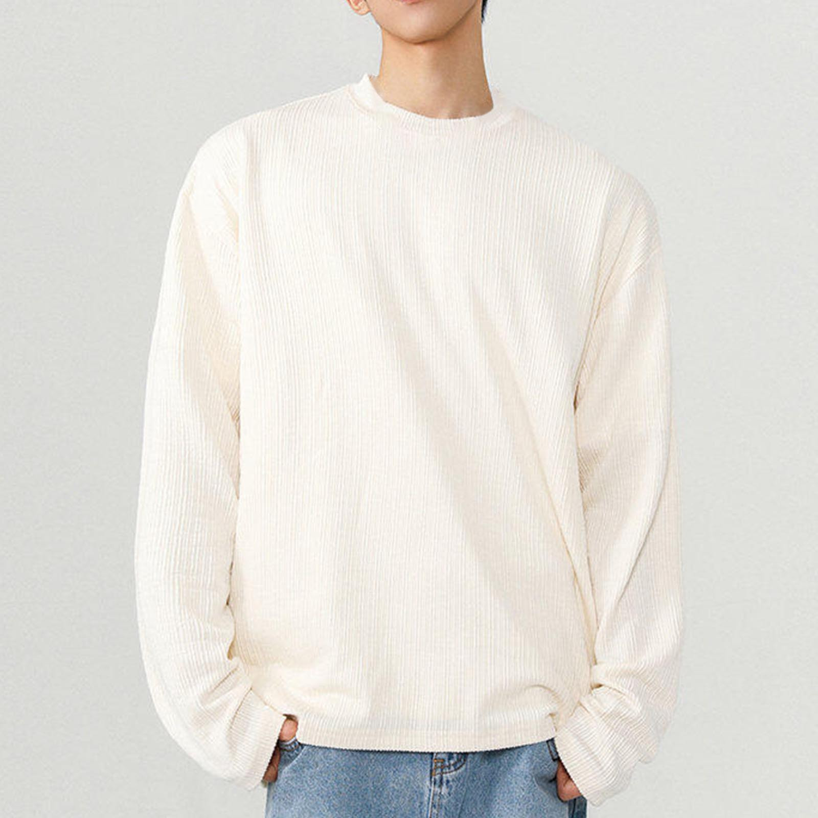 Hero image 0 of Fashion YLSDY Men's Long Sleeve Shirts Plus Size Casual Crewneck Pullover T-Shirt Loose Fit Textured Knit Tee Tops Stretch Blouse White XL, 0 of 5