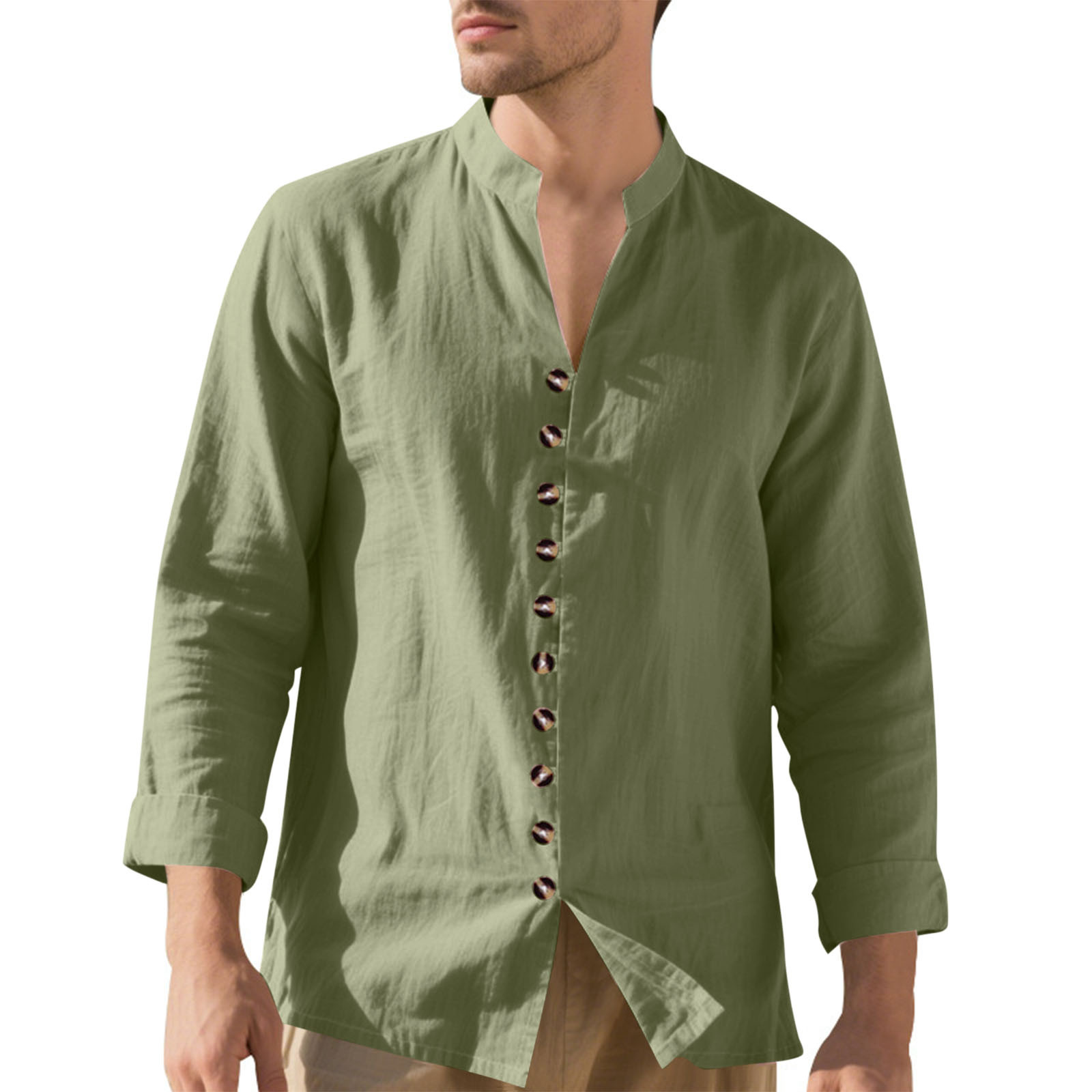 Hero image 0 of Fashion YLSDY Mens Linen Shirt Short Sleeve Button Down Collar T Shirt Blouses Casual Solid Color Summer Vacation Beach Shirts Army Green XL, 0 of 9