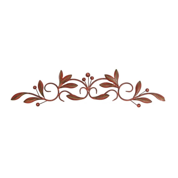 DecMode Red Metal Leaf Wall Decor with Scrolled Vine