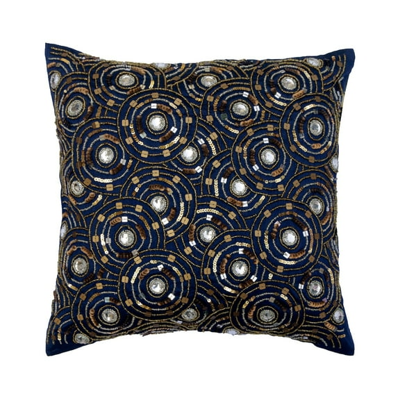 Hero image 0 of Decorative Navy Blue 26"x26" (65x65 cm) Euro Size Shams, Silk Beaded & Embroidered Euro Shams For Sofa, Geometric Pattern Modern Style - Navy Celeste, 0 of 4