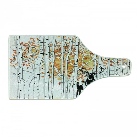 Hero image 0 of Deer Cutting Board, Deer in Forest Autumn Colors Trees Foliage Wilderness Seasonal Art, Decorative Tempered Glass Cutting and Serving Board, Wine Bottle Shape, Orange Green and White, by Ambesonne, 0 of 1