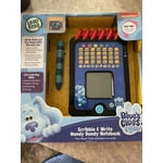 Play with Blue and Josh using your own Handy Dandy Notebook with the Blues Clues & You! Scribble & Write Handy Dandy Notebook. Practice writing numbers, uppercase letters and lowercase letters using the blue-striped stylus by following along on the LED touchscreen. The touchscreen shows stroke order step-by-step and provides immediate feedback as little learners practice writing. Play six learning modes with Blue and Josh to explore phonics, logic, numbers, counting, shapes, music and creativity. Joshs voice guides kids through play while Blue offers her encouragement. Draw three clues on the Handy Dandy Notebook screen, then think, think, think to help Josh figure out Blues Clues. Get creative in Free Draw mode or jam along with Blue and Josh by adding percussion, guitar and piano sounds to make your own music. Intended for ages 3+ years. Requires 2 AA batteries. Batteries included for demo purposes only. New batteries recommended for regular use.
