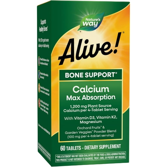 Nature’s Way Alive! Calcium Bone Support*, Max Absorption, Plant Source Calcium, 60 Tablets