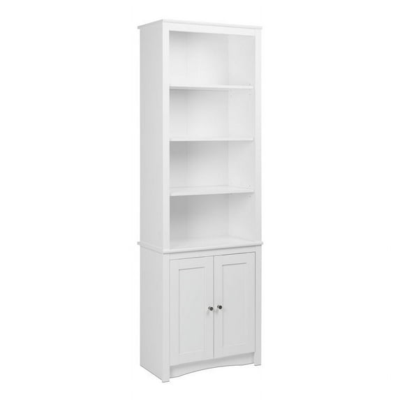 Prepac Tall Bookcase with 2 Shaker Doors, WhitePrepac Tall Bookcase with 2 Shaker Doors WhitePrepac Rustic Ridge Washed White 26 W x 79 75 H x 12 5 D Bookcase
