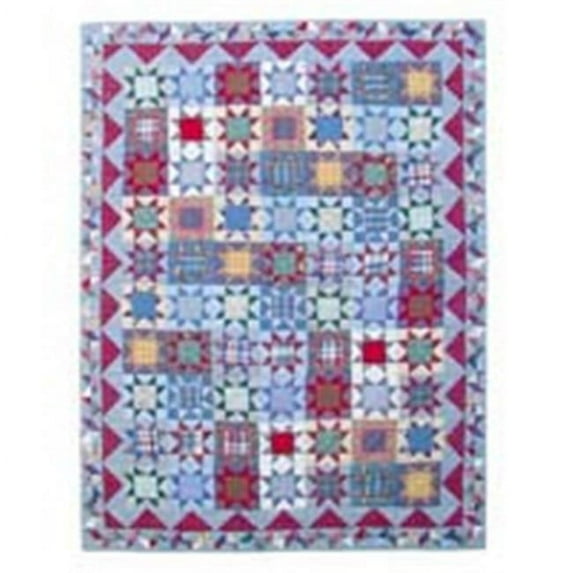 Exploding with soft blues, triangles of deep home spun red plaid, turquoise stars with warm center and a beautiful border of geometric shapes the denim burst with 8 - cornered stars of various colors on a blue checkered background brings life to any room!