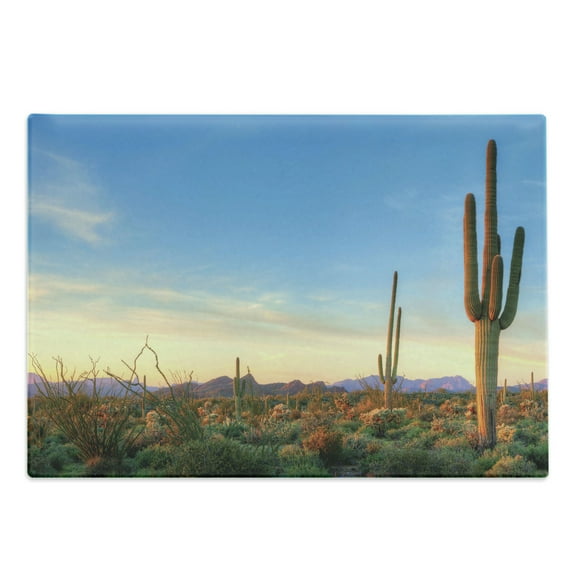 Hero image 0 of Desert Cutting Board, Sonoran Desert Catching Days Last Rays Saguaro Cactus Wild Vegetation, Decorative Tempered Glass Cutting and Serving Board, Large Size, Green Orange Pale Blue, by Ambesonne, 0 of 1