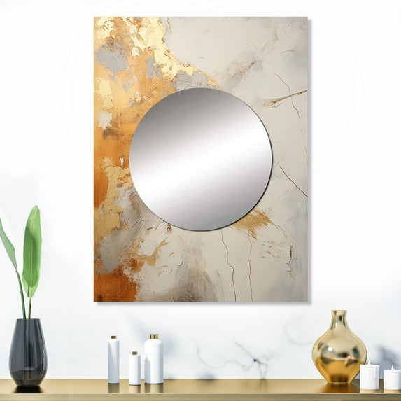 Hero image 0 of Designart "Abstract Split In Gold And White" Abstract Shapes Mirror Wall Decor - Modern Beige Abstract Dining Room Wall Mirror Art - 32" x 24" Inch, 0 of 5