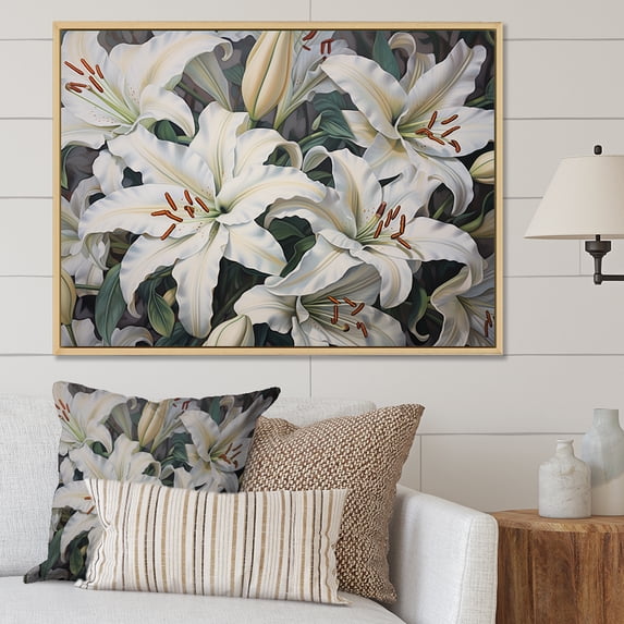 Designart "Beautiful White Lilies In Bloom I" Lilies Floater Framed Wall Art Living RoomDesignart Beautiful White Lilies In Bloom I Lilies Floater Framed Wall Art Living Room