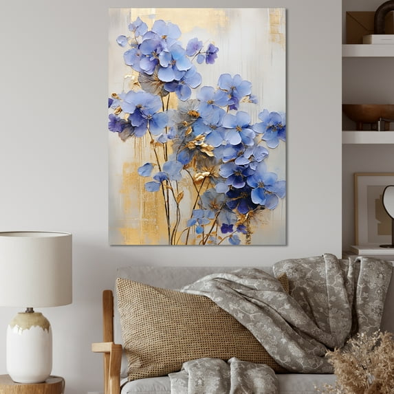 Designart "Exquisite Violets In Blue And Gold Hues II" Violets Canvas Art Print
