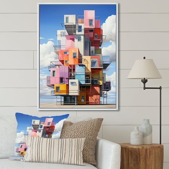 Designart "Geometric High-Rise In De Stijl Manner" Clouds Floater Framed Wall Art PrintsDesignart Geometric High Rise In De Stijl Manner Clouds Floater Framed Wall Art Prints