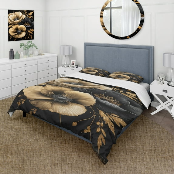 Hero image 0 of Designart "Luxurious Black and Gold Hibiscus II" Floral & Botanical Bedding Covert Set - Hibiscus Black Floral Bed Set With 2 Shams, 0 of 1