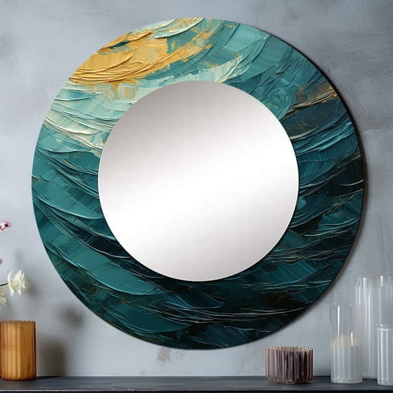 Hero image 0 of Designart "Majestic Motion In Teal" Abstract Spirals Rund Mirror For Wall Decor - Large Blue Round Print Mirror - Round Modern Mirror - Wall Mounted Round Large Mirror - 29" x 29", 0 of 6