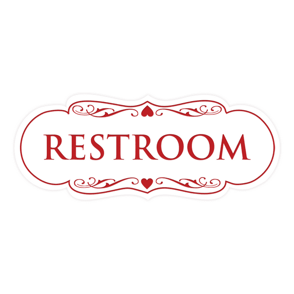 Designer Restroom Sign - White / Red - Small