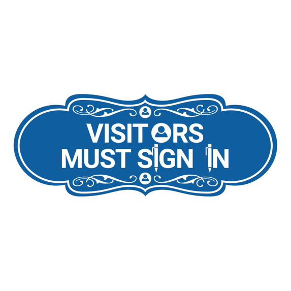 Designer Visitors Must Sign In Sign (Blue) - Medium