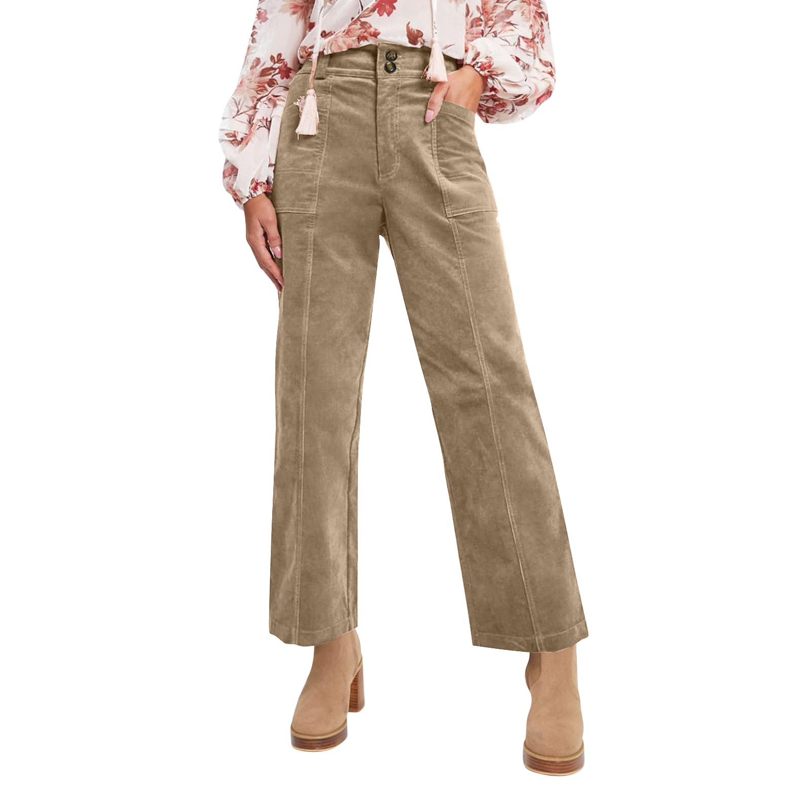 Difdany Womens Plus Size Casual Winter Corduroy Pants Fashion 2024 Comfy Elastic Waist Straight Leg Pants Trousers Khaki S