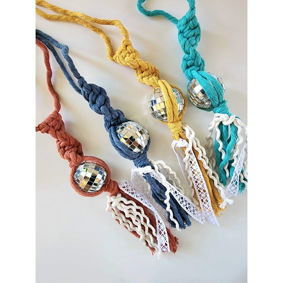 Experience the perfect fusion of bohemian charm and disco glam with these Handmade Boho Macramé Disco Ball Car Charm. Elevate your daily drive and transform your car into a bohemian sanctuary on wheels. Order now and let your car exude the free-spirited energy of boho chic!