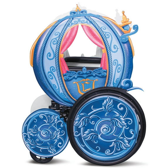 Disney Princess Carriage Adaptive Wheelchair Cover. Your little fairytale princess will be all smiles in this enchanting Cinderella Coach Wheel Chair Cover Costume.. Bring your childs magical fairytale story to life! The Cinderellas Princess Carriage Wheelchair Cover features four blue wheel coverings with printed pumpkin vine design and two printed carriage pieces. This wheelchair cover measures 53 Height and 42 Length. Includes plastic piping and self-stick fabric strips to help secure the pieces. Easy assembly. Fits most standard wheelchairs. Officially Licensed. Special Shipping Information: This item ships separately from other items in your order. This item cannot ship to a P.O. Box. This item may be subject to additional processing days. ITEM IS NOT ELIGIBLE FOR EXPEDITED SHIPPING