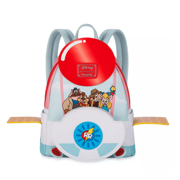 Mini backpack","Simulated leather grain","Screen art front, back and sides","Chip, Dale, Gadget, Monterey Jack and Zipper screen art","Double zipper main compartment","Side slip pockets","Wings and balloon appliqu��s","Loungefly logo metal pulls","Silvertone hardware","Adjustable padded shoulder straps","Top carry handle","Rescue Rangers","Disney x��Loungefly logo label plate","Inspired by Disney\u0027s","Part of the Disney100 Decades: The 1980s Collection","Part of the Disney100 Celebration Collections","PVC / polyurethane / metal","Approx. 10\u0027\u0027 H x 9\u0027\u0027 W (16\u0027\u0027 W including wings) x 5\u0027\u0027 D","Imported