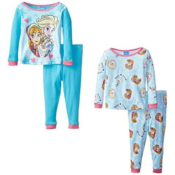 Disney Little Girls' Fair Isle Sisters 4-Piece Pajama Set, White, 4T