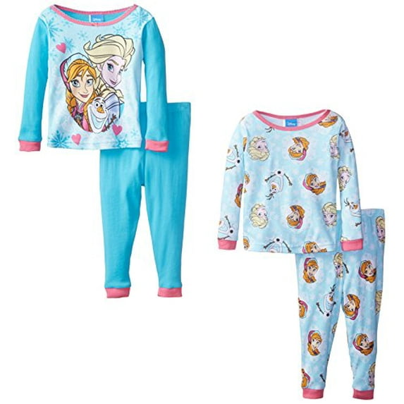 Disney Little Girls' Toddler Fair Isle Sisters 4-Piece Pajama Set, White, 2T