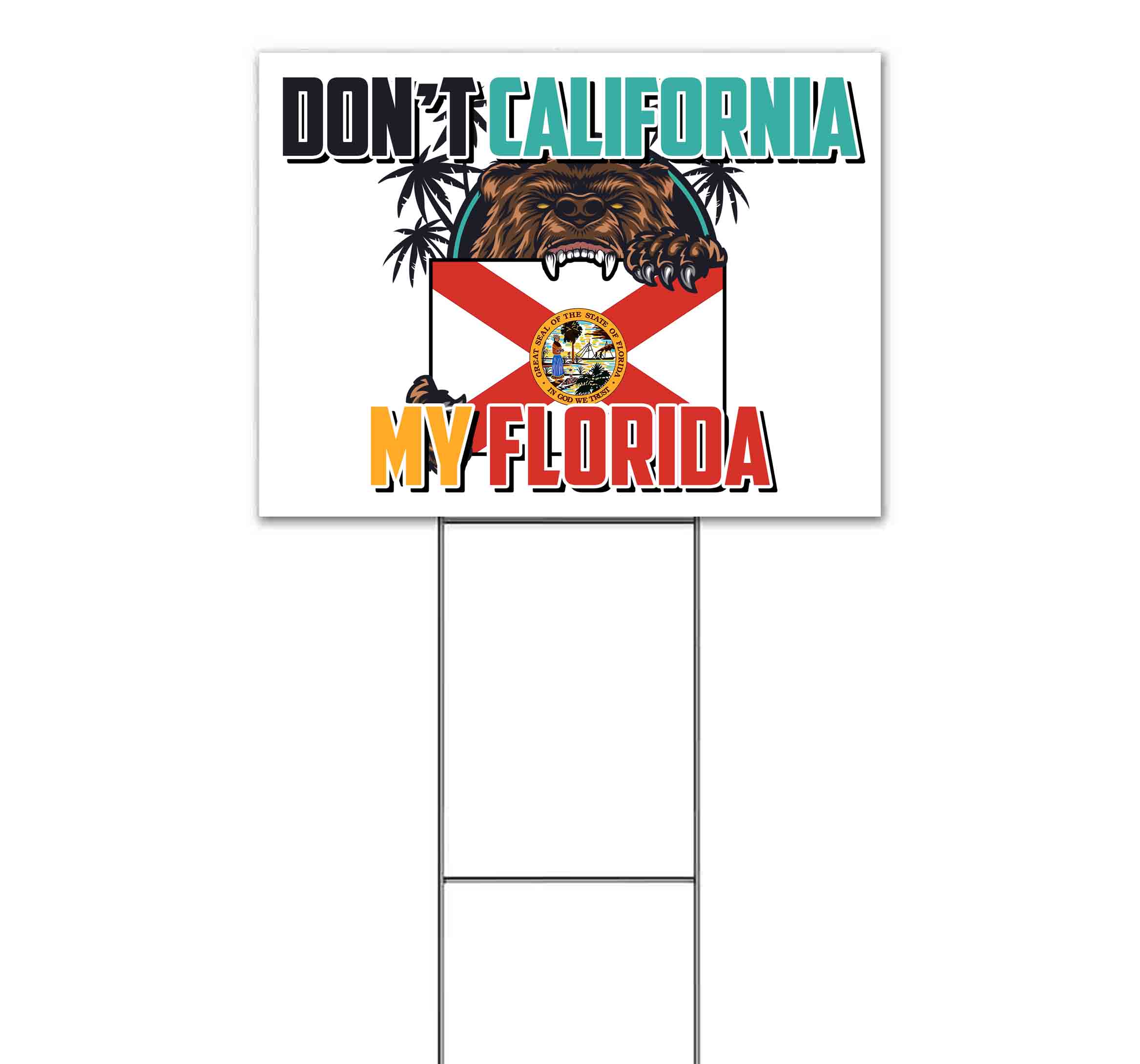 Dont California My Florida Flag Bear (18" x 24") Yard Sign, Includes Metal Step Stake