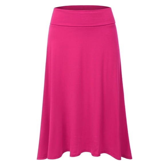 Hero image 0 of Doublju Women's High Waist Elastic Soft Flare Flowy Midi Skirt (Plus Size Available), 0 of 4