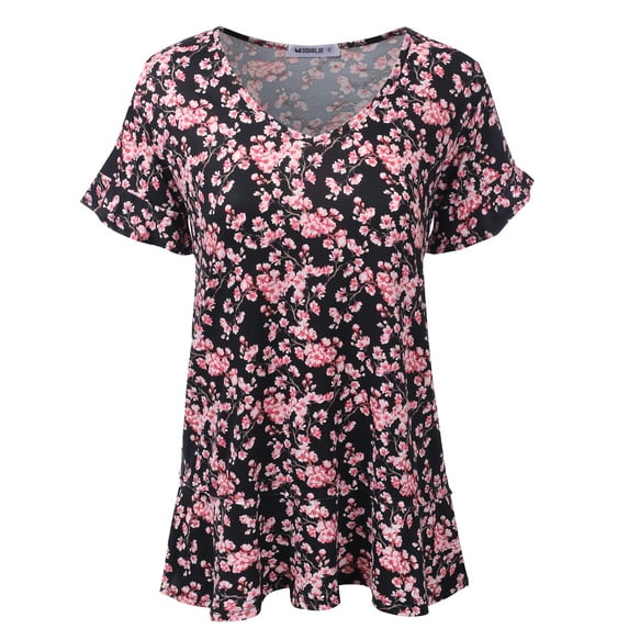 Hero image 0 of Doublju Women's Short Sleeves Flare Tunic Tops for Leggings Flowy Shirt with Plus Size, 0 of 4