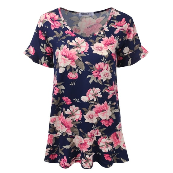 Hero image 0 of Doublju Women's Short Sleeves Flare Tunic Tops for Leggings Flowy Shirt with Plus Size, 0 of 4