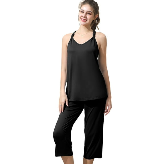 Doublju Women's Sleeveless Racerback Capri Pajama 2 Pcs Set (Plus Size Available)